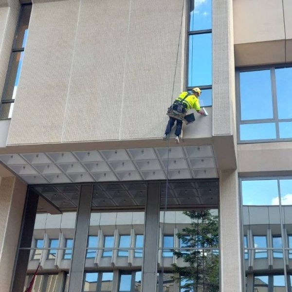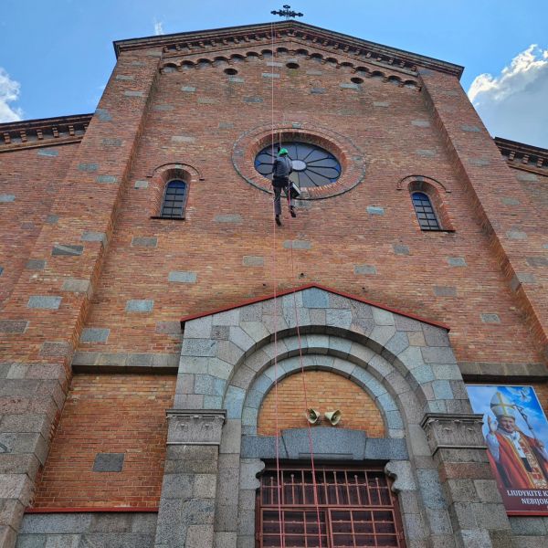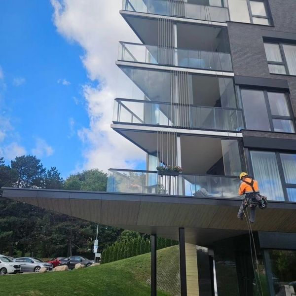 Valymo darbai aukštyje. Teikiame langų, fasadų, stogų plovimo paslaugas. Žiemos metu atliekame sniego valymą, varveklių numušimą, užtikrindami pastato bei žmonių saugumą.