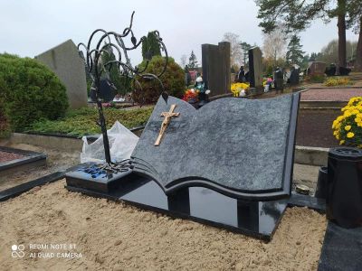 Atliekame visą paminklo gamybos procesą – nuo idėjos ir dizaino iki pagaminimo ir pastatymo. Visą produkciją gaminame patys, kreipdamiesi į mus, jūs turite galimybę įgyvendinti bet kokius savo sumanymus. Pagaminsime antkapius, skulptūras, vazas, kalviškus gaminius pagal jūsų nurodymus, suprojektuosime pagal kliento individualų brėžinį.