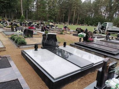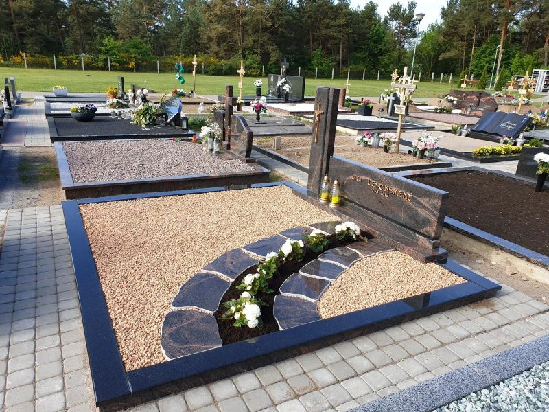 Kapaviečių dengimas įvairių rūšių granito plokštėmis. Platus spalvų spektras – nuo gilios, veidrodinės juodos (Gabbro, Nero Assoluto) iki elegantiškos pilkos ar išraiškingos raudonai-mėlynos su natūraliais raštais (Aurora, Blue Pearl) – leidžia sukurti solidų ir lengvai prižiūrimą atminimo kampelį. Marmuro plokštės leidžia sukurti estetinį paviršių, idealiai tinkantį norintiems sukurti  atminimo vietą, dvelkiančią ramiomis ir šviesiomis emocijomis.