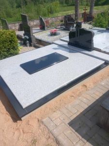 Kapavietės, kapo dengimas granito plokštėmis.