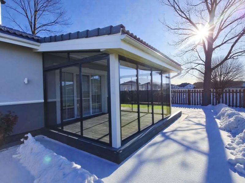 Montuojame stiklines terasas ir aliuminės verandos sistemas su stumdomais grūdinto stiklo elementais. Aliuminio profilio karkasas, stikliniai šonai ir stogas – modernus sprendimas, suteikiantis erdvei lengvumo ir apsaugos nuo oro sąlygų.
