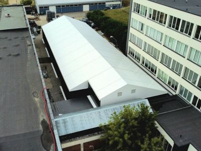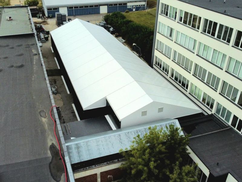- Stogo danga: PVC tentas (650 g/m²), galimas antikondensacinis sluoksnis arba šiltintas daugiasluoksnis tentas.