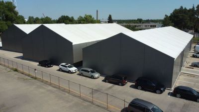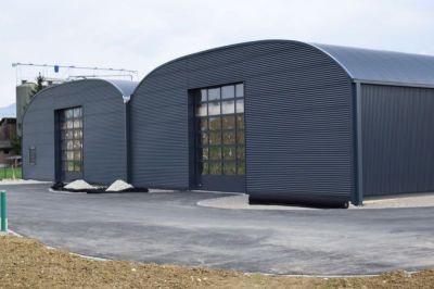 Norvegija. Aliuminio profilių angarai su cinkuotomis jungtimis, pritaikyti naudoti žiemą ir vėjuotuose regionuose. Lengvai montuojami ir perstatomi, pamatai nebūtini.