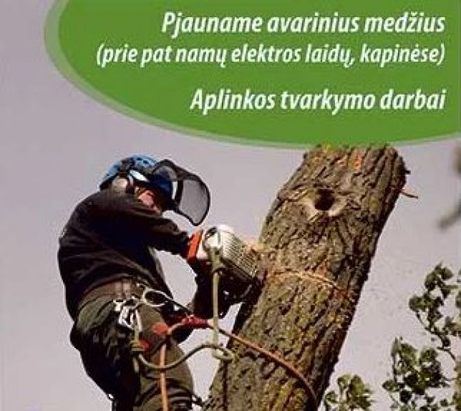 Avarinių medžių pjovimas, krūmynų valymas, apleistų sklypų tvarkymas, aplinkos tvarkymo darbai.