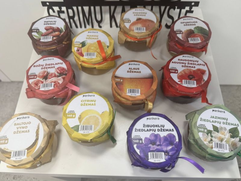 Aukštos klasės džemai, gurmaniški užkandukai, glaistyti riešutai, užtepai, medus.