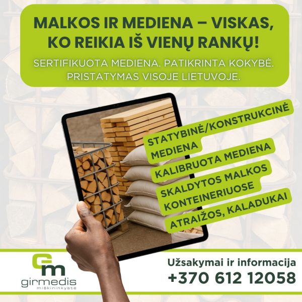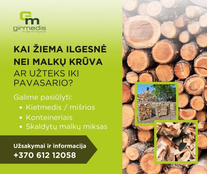 GIRMEDIS, UAB - miško pirkimas, skaldytos malkos RM dėžutėse Telšiai