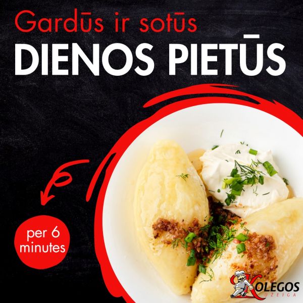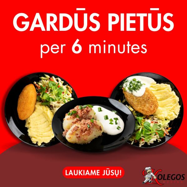 Jauki vieta, kur kasdien laukia gardūs ir sotūs dienos pietūs už draugišką kainą. Siūlome platų pasirinkimą, kasdien kintantį meniu ir tradicinius lietuviškus patiekalus, kurie primena namų skonius. Greitas aptarnavimas užtikrina, kad net ir per trumpą pietų pertrauką spėsite skaniai pavalgyti. Užsukite ir pasimėgaukite kokybišku maistu bei malonia atmosfera!