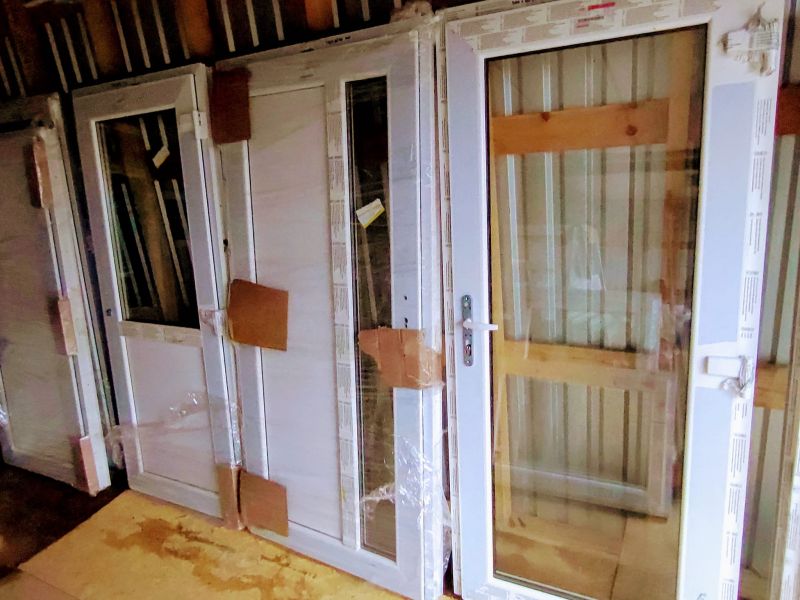 Lauko durys, balkonų durys, vidaus durys. Įvairūs matmenys ir skirtingi užpildai (stiklas/PVC).