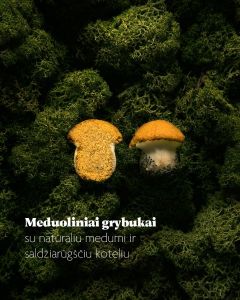 Grybukai - mūsų klientų pamėgti biskvitiniai grybukai ir meduoliniai grybukai, lieti šokoladu arba šokoladiniu glaistu.