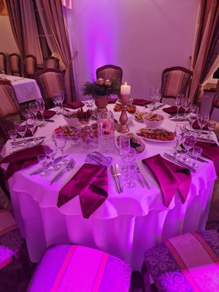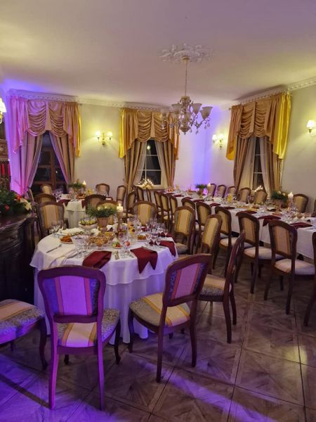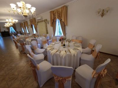 Mūsų pagrindinė banketinė salė talpina iki 120 svečių ir puikiai tinka organizuoti vestuves, jubiliejus, gimtadienius, krikštynas ar dideles konferencijas bei susitikimus. Mielai padedame su šventės organizavimu, kad Jūsų vizija taptų realybe.