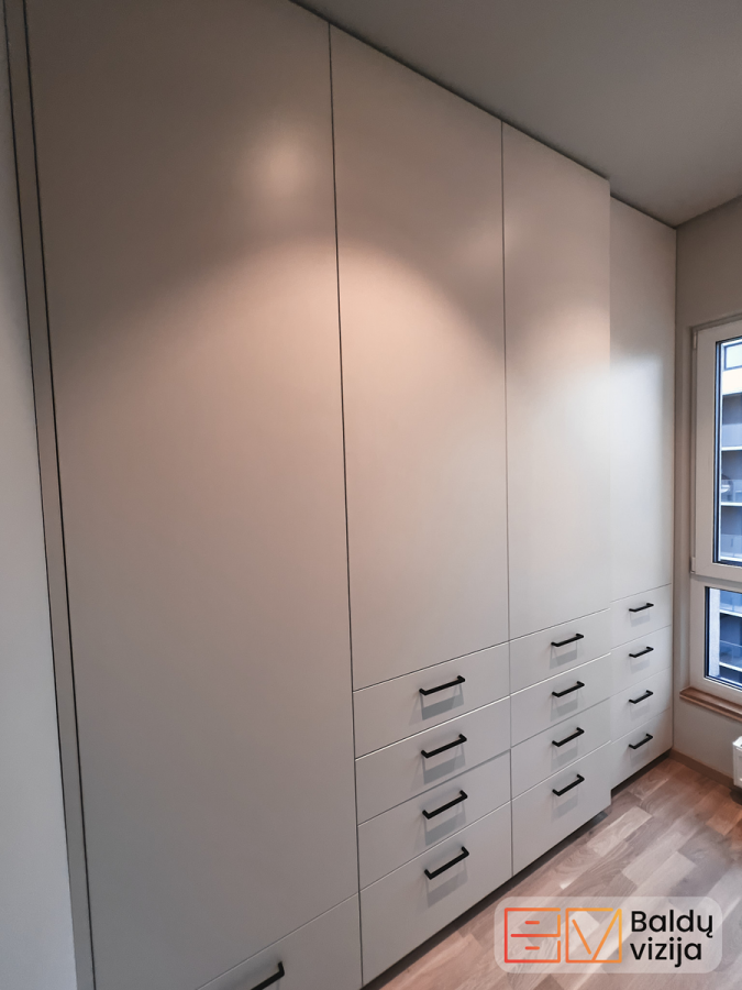 Tikslus atitikimas poreikiams – galite užsakyti tokį stalčių kiekį, lentynų aukštį, spintų gylį, kokio tikrai reikia jūsų daiktams ir gyvenimo būdui.