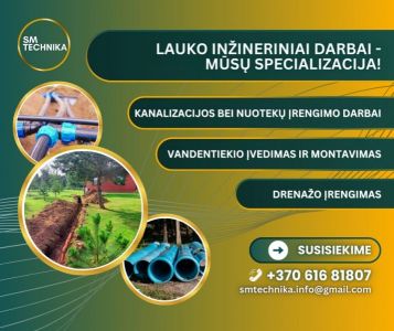 Lauko inžineriniai darbai - įrengiame vandentiekį ir kanalizaciją, užtikrindami efektyvų vandens tiekimą ir nuotekų šalinimą, teikiame drenažo sistemų montavimo paslaugas.