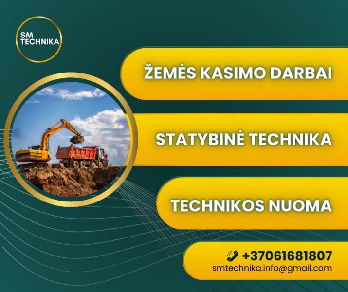 Kasame bei giliname tvenkinius, ekskavatoriaus nuoma.