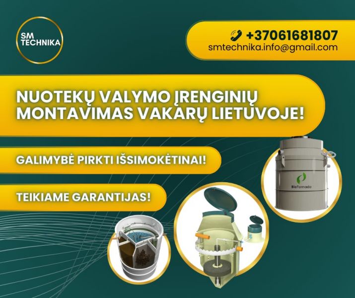 Modernūs nuotekų valymo įrenginiai bei jų montavimas. Nuotekų valymo įrenginių montavimas, dirbame su August, Feliksnavis, Buiteka ir Bio Tornado nuotekų valymo įrenginiais.