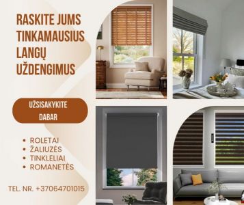 Roletai įvairių tipų langams. Įvairūs tekstūrų ir spalvų variantai, daugiau nei 200 skirtingų audinių. Universalūs tvirtinimo ir valdymo būdai. Matavimas, gamyba, montavimas.