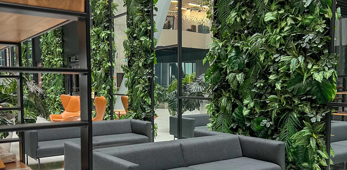 Biurai: žaliąsias sienas galima naudoti ne tik gyvenamuosiuose kvartaluose, bet ir biuruose, viešose erdvėse. Biuruose vertikalieji sodai mažina stresą darbuotojams, sukuria profesionalų, modernų įvaizdį, didina produktyvumą.